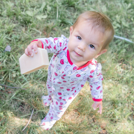Our natural soaps keep your baby's skin soft, clean, and hydrated. You can also use our goat milk soap on your baby's hair as well as their skin. (Just be careful to not get any in their eyes. Soap in the eyes can sting!)